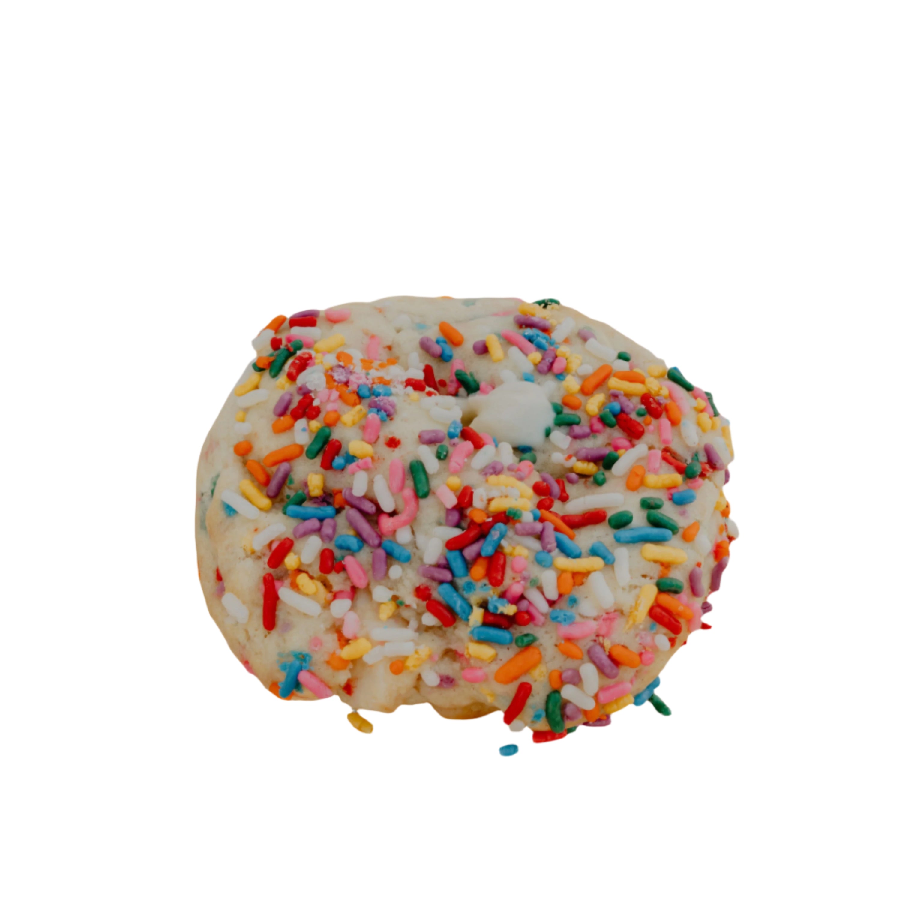 A birthday cake cookie filled with creamy, melted Swiss Lindt white chocolate for a rich, gooey center.